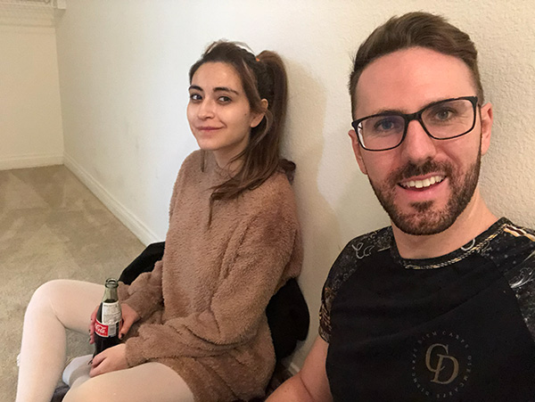On the day we moved in, we arrived to a completely empty house. Here’s us looking exhausted after a very long day, sitting in the closet with a takeout.
