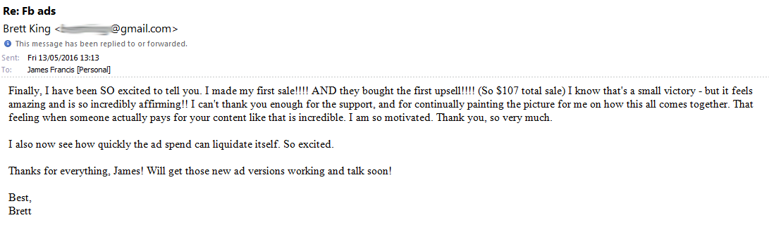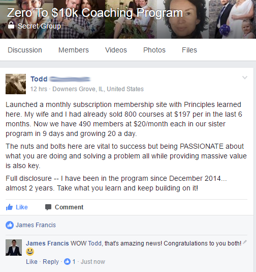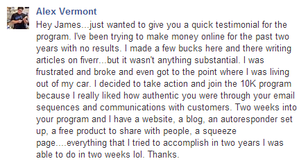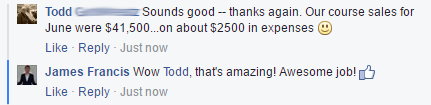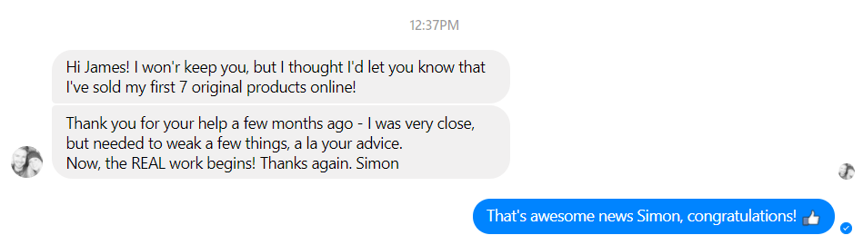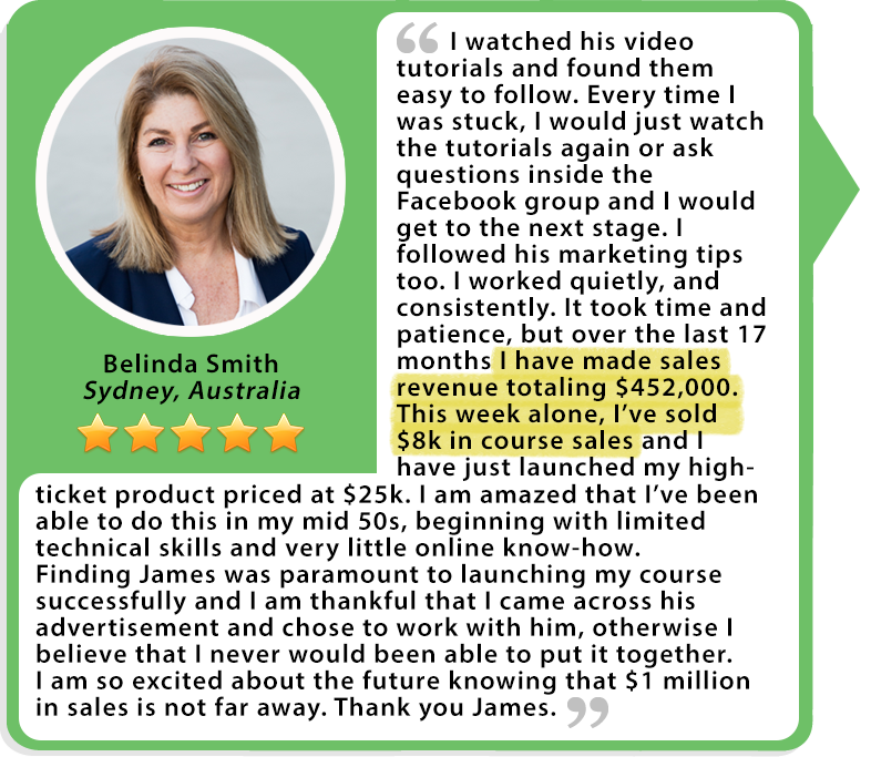 “Just about 2 weeks in I had my first $100 day… A month in I had my first $300 day… 5 months in we did $5,200… And just last month we did over $12,450 – and it’s ALL due to James and his coaching.”