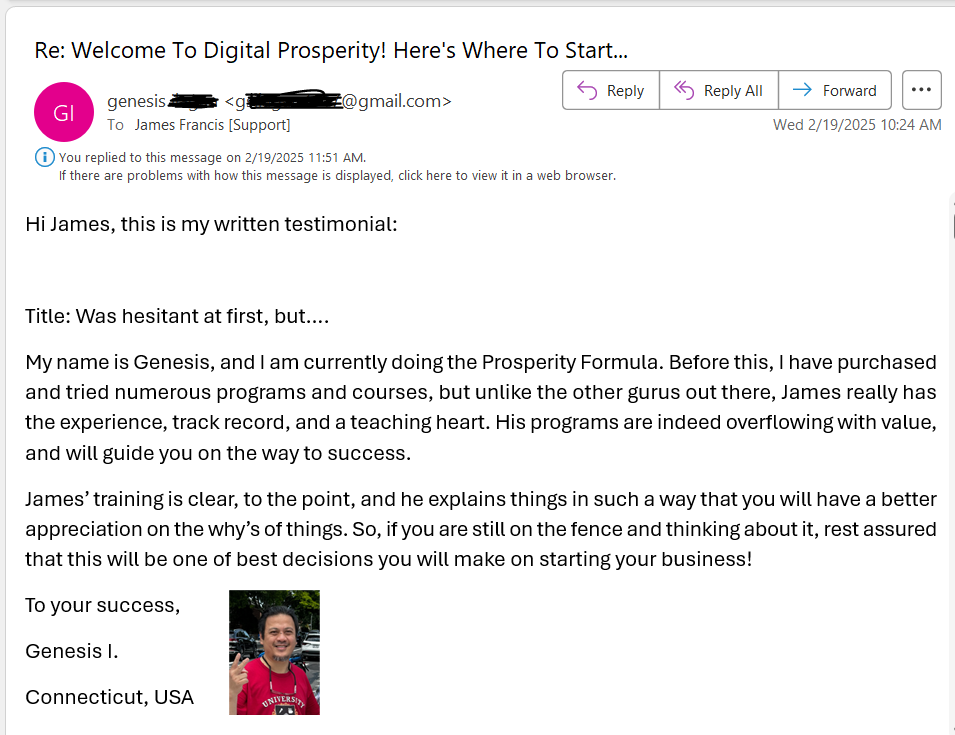 “Before I was struggling for 1 or 2 years… James was the first guy that showed me the real way. This was my BIGGEST breakthrough. Don’t doubt, just do it!”